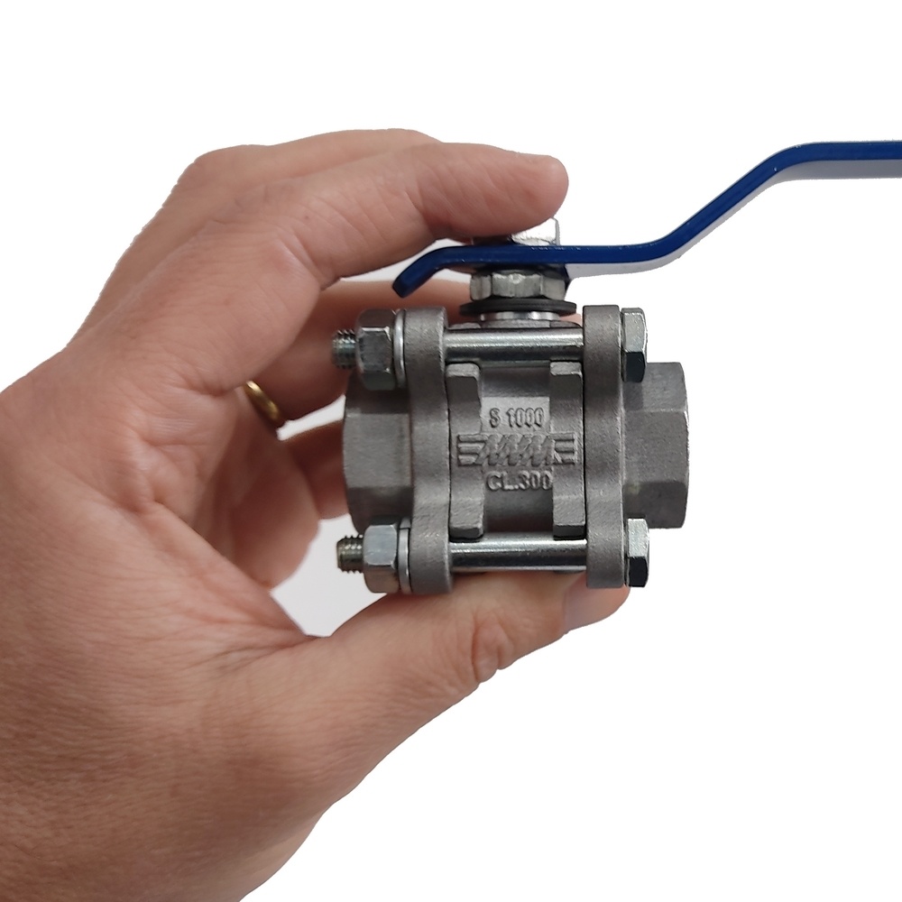 Cód. 370021 Válvula de Esfera Tripartida 1/2" BSP Passagem Plena - Semi Inox com Vedação em Teflon - Cód: 370021